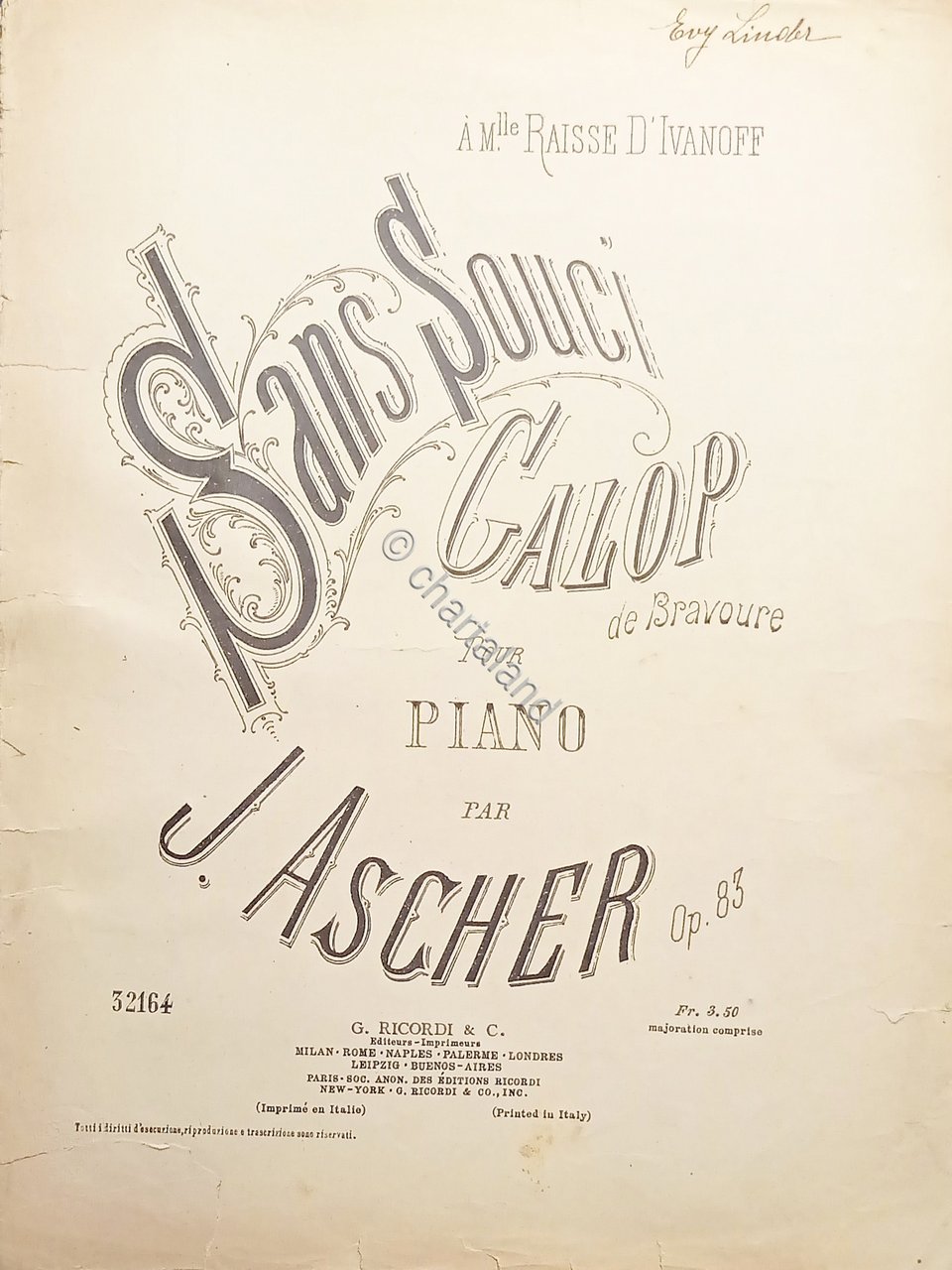Spartiti - Sans Souci - Galop de Bravoure pour Piano par J. Ascher - Ricordi