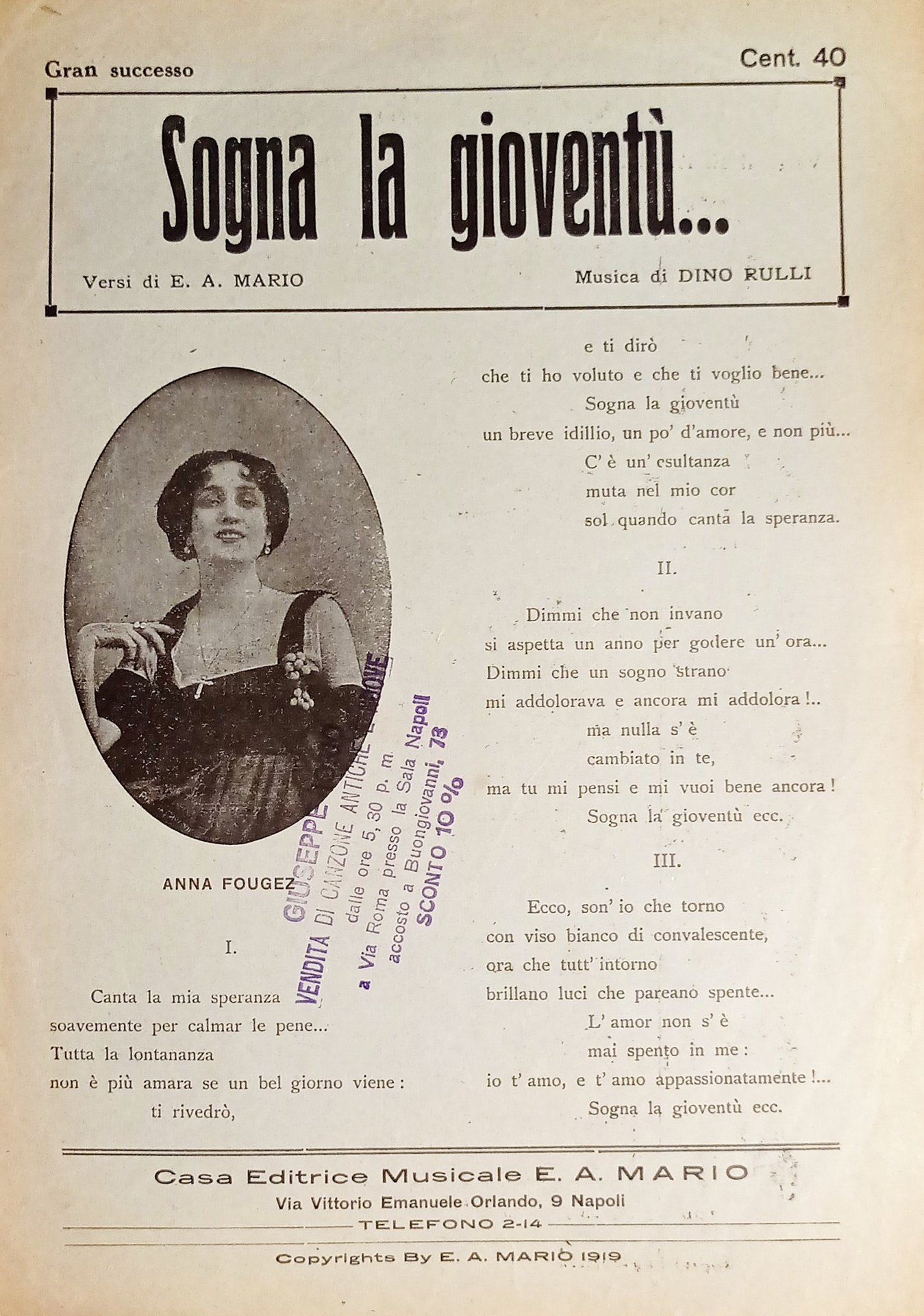 Spartiti - Sogna la gioventù di E. A. Mario e D. Rulli - Anna Fougez