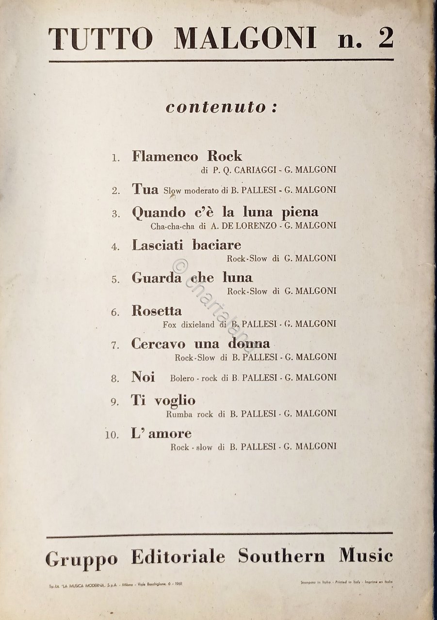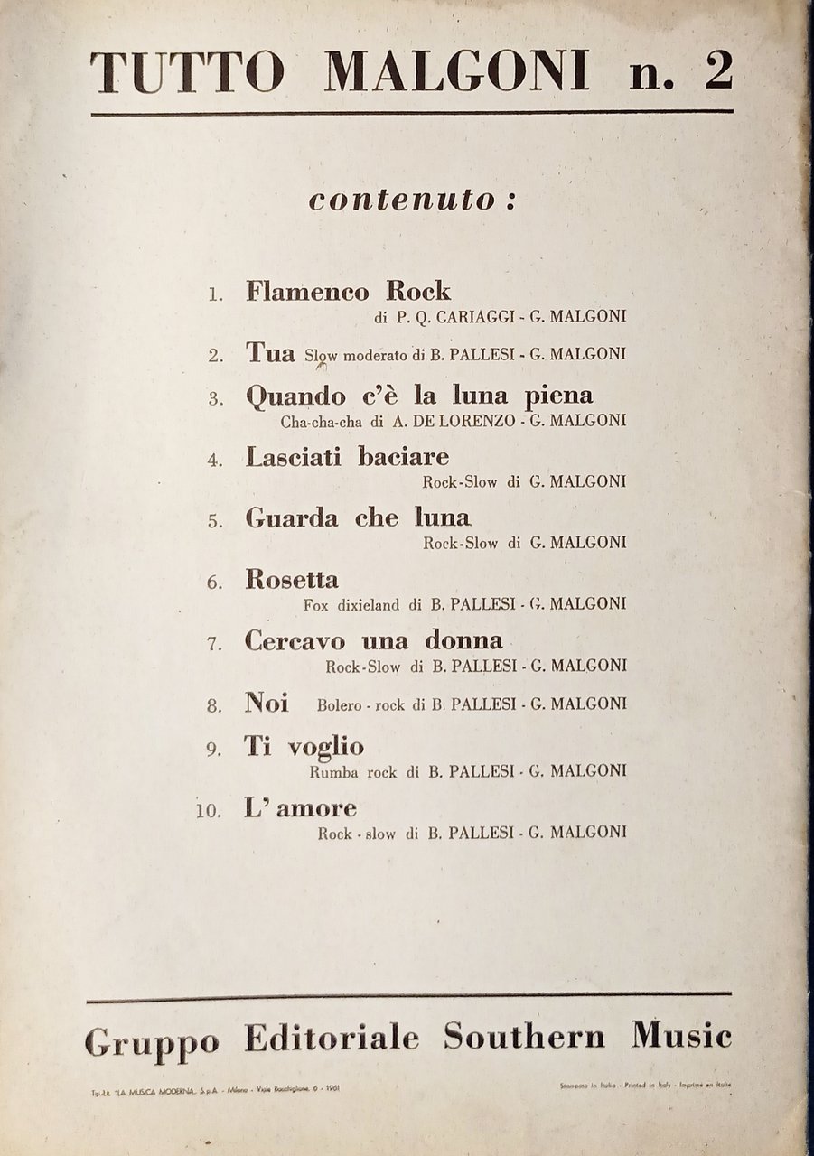Spartiti - Tutto Malgoni - Album Raccolta N. 2 - 1961