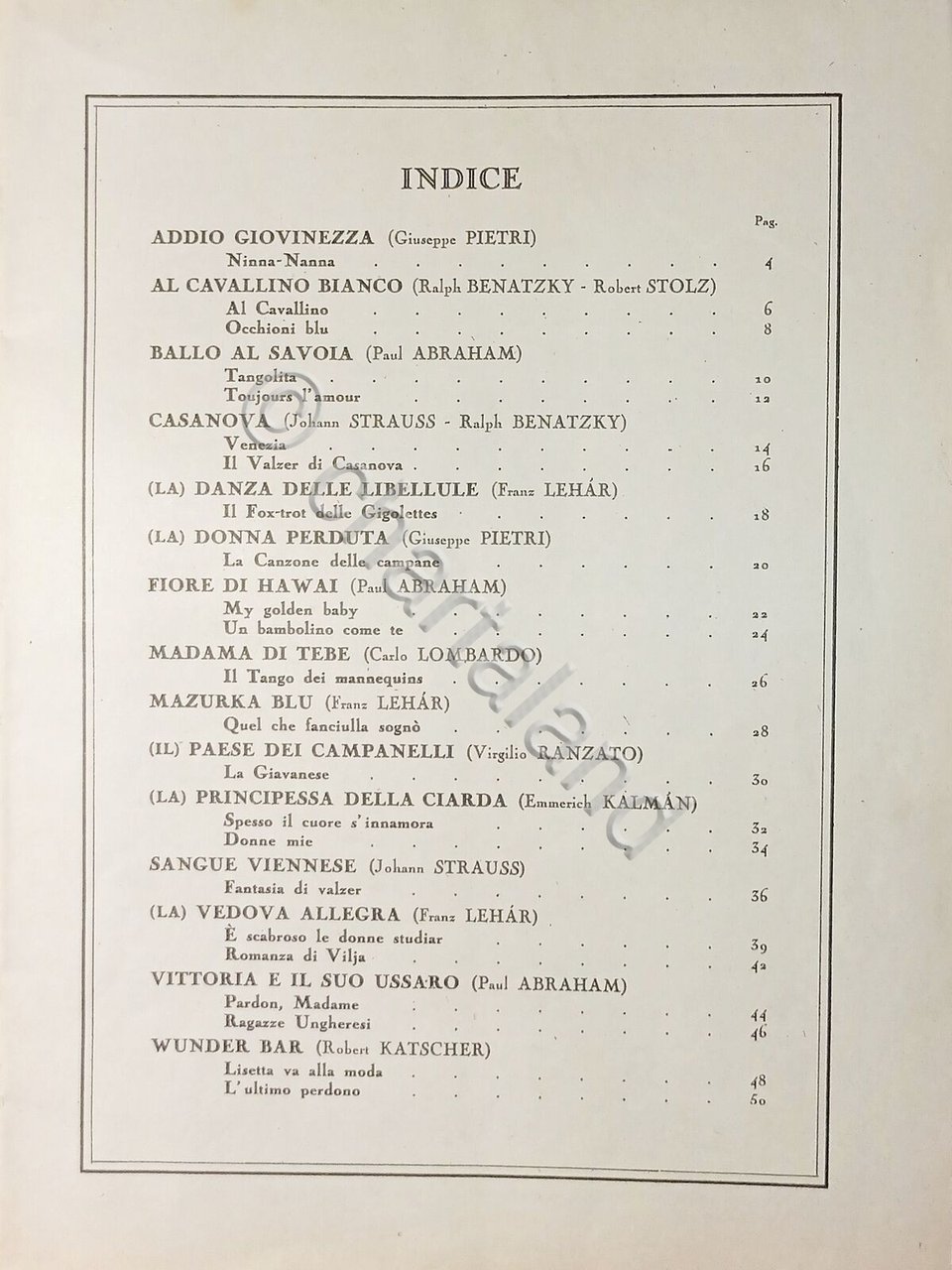 Spartiti Melodie d'Operette Volume I - 23 Brani Scelte per Canto e Piano - 1942