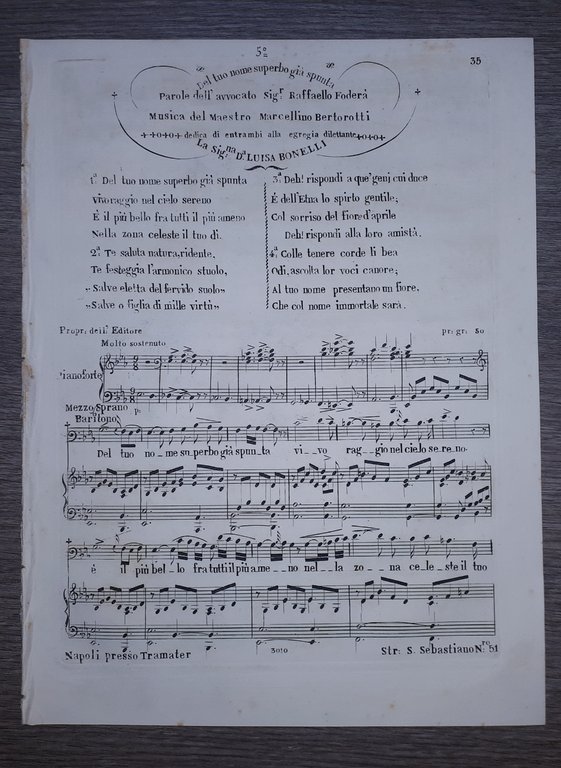 Spartito - Del tuo nome superbo già spunta - Marcellino Bertorotti - № 5 - pp. 10 Copertina morbida Condizione buone come da foto