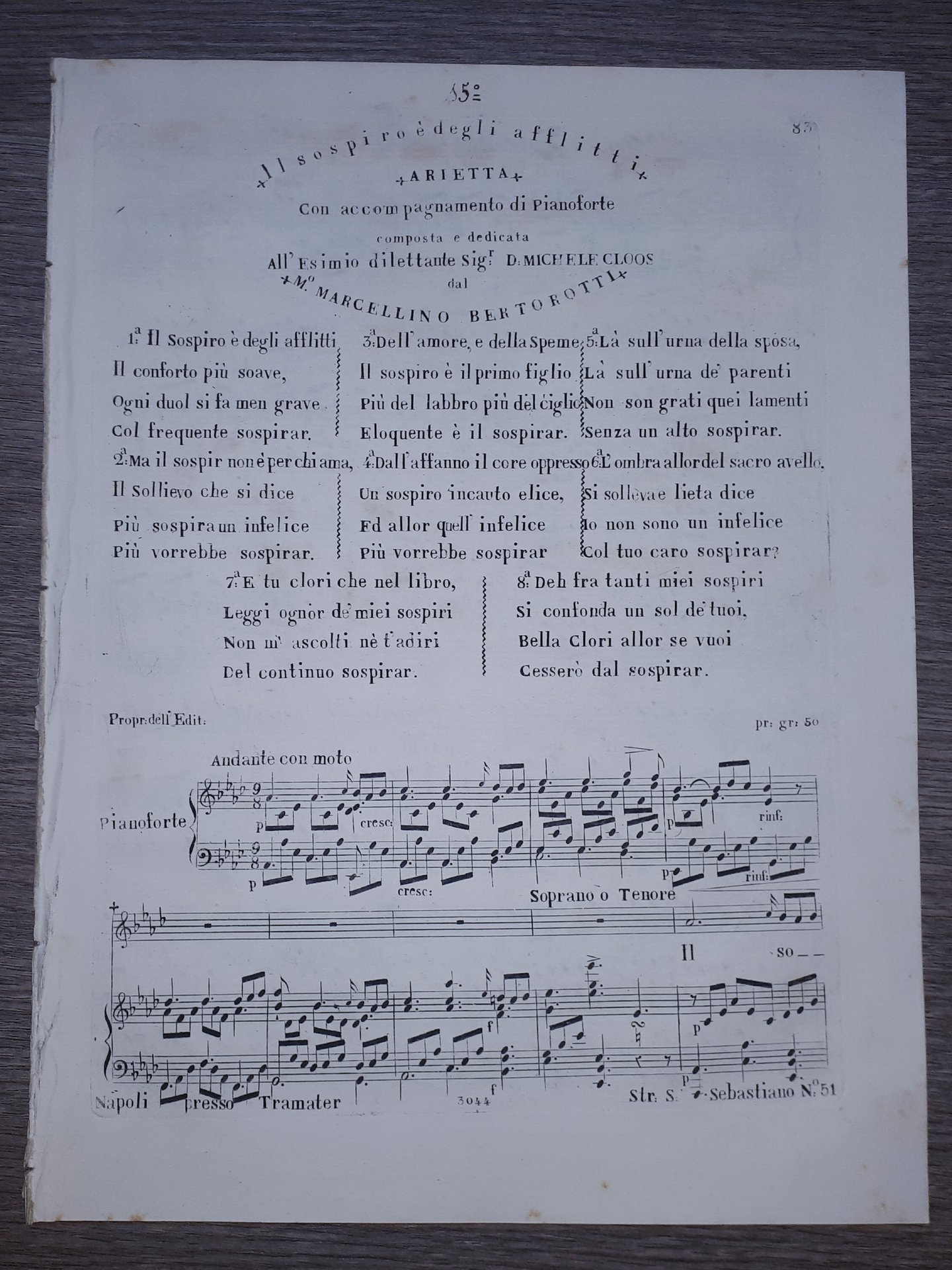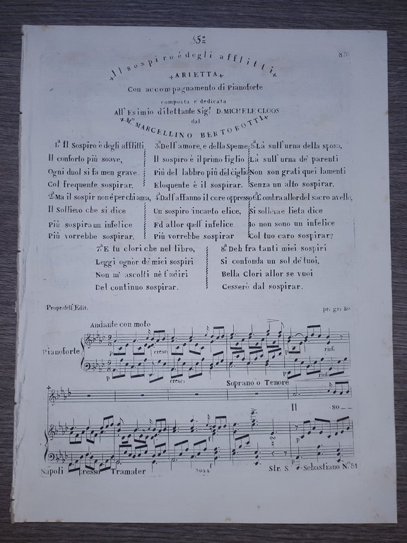 Spartito - Il sospiro è degli afflitti - Arietta - Marcellino Bertorotti