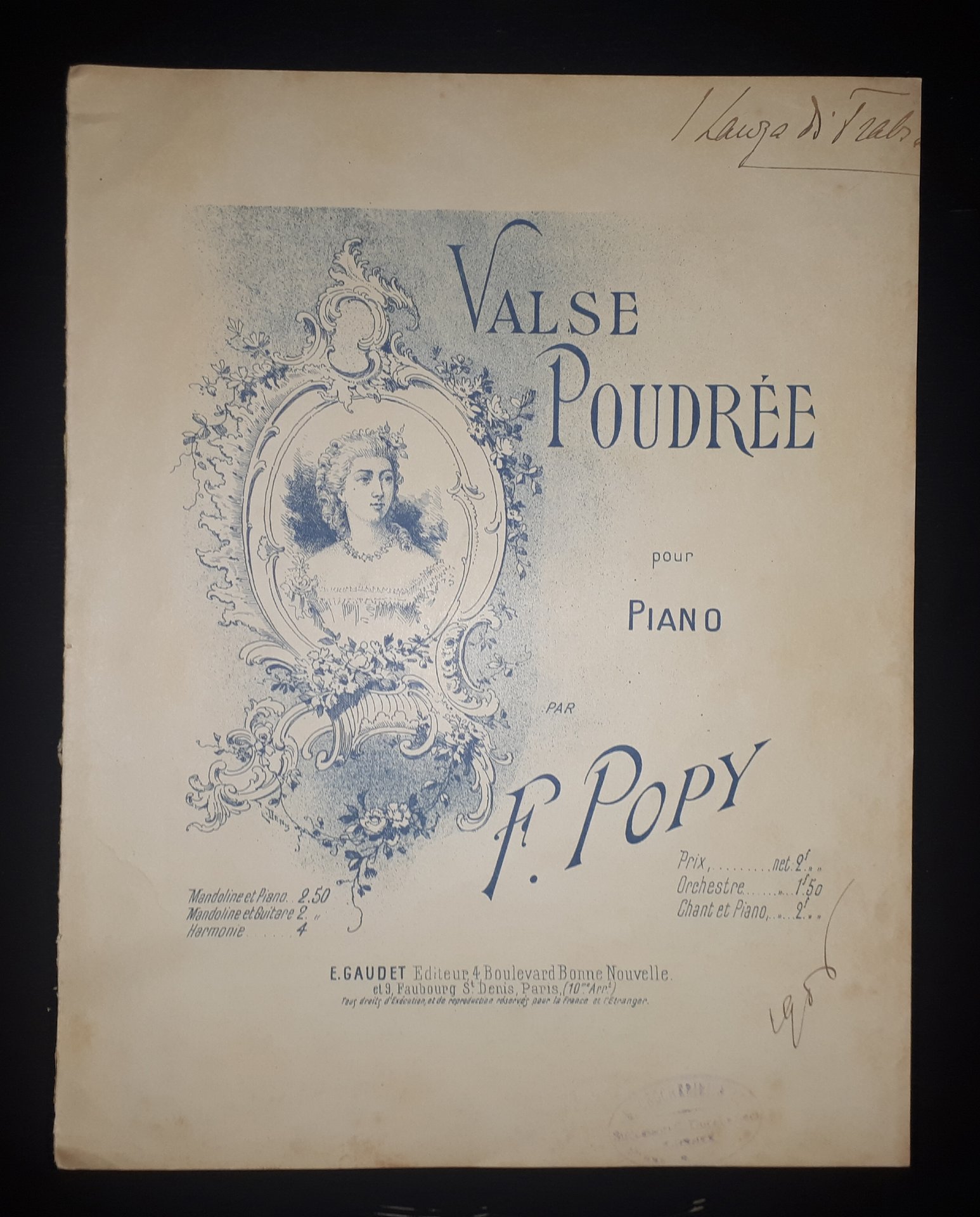 Spartito - Valse Poudrée - Intermezzo - Francis Popy - 1900 ca.