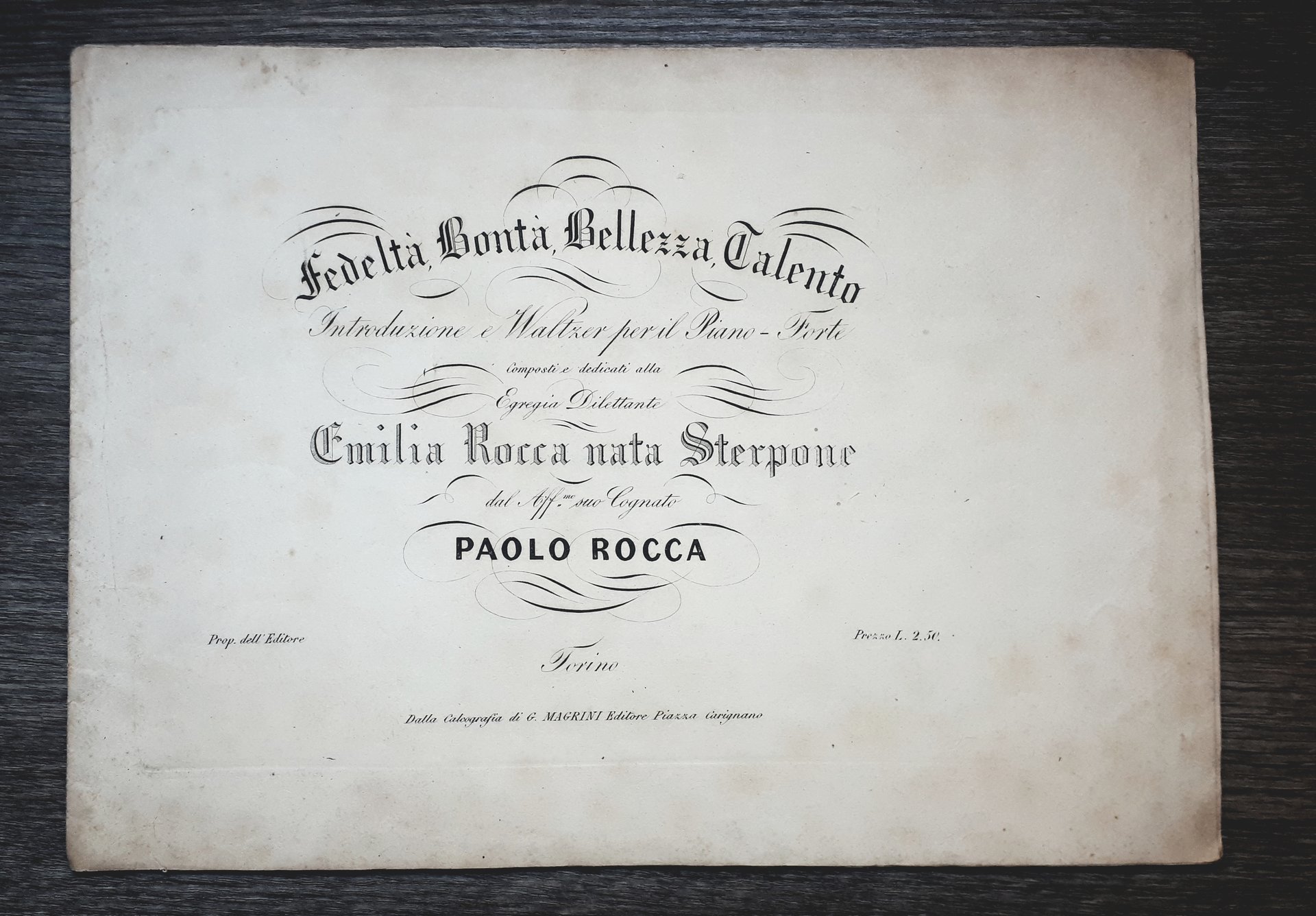 Spartito Fedeltà, Bontà, Bellezza, Talento - Pianoforte - Paolo Rocca 1890 ca.