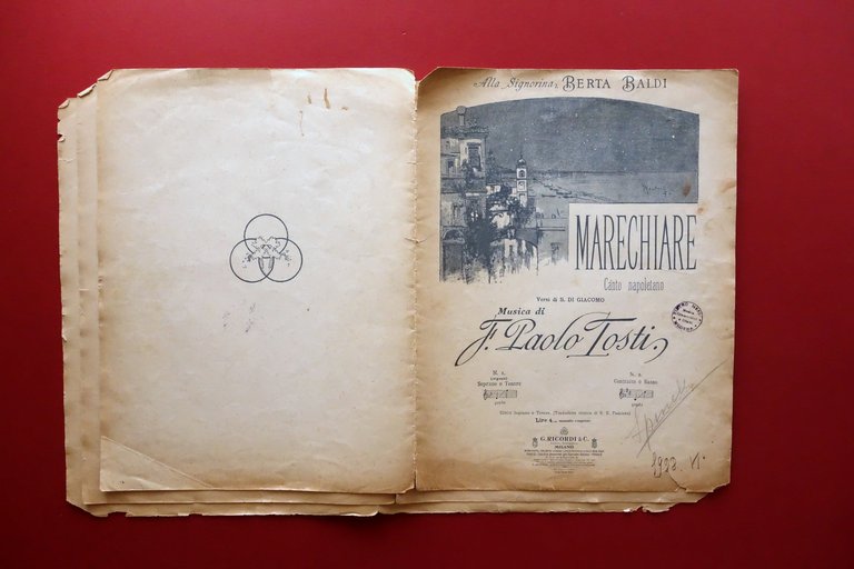 Spartito Marechiare Canto Napoletano Tosti Ricordi Milano Di Giacomo Musica 1928