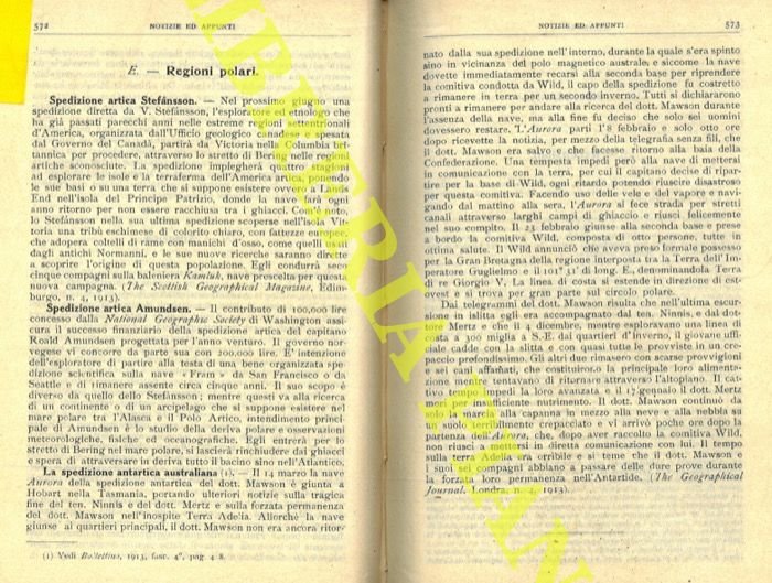 Roma, Società Geografica Italiana, 1913, 8vo stralcio con copertina posticcia muta, pp. 572/573. - ! ATTENZIONE !: Con il termine estratto (o stralcio) intendiamo riferirci ad un fascicolo contenente un articolo, completo in se, sia che esso sia stato stampato a parte utilizzando la stessa composizione sia che provenga direttamente da una rivista. Le pagine sono indicate come "da/a", ad esempio: 229/231 significa che il testo è composto da tre pagine. Quando la rivista di provenienza non viene indicata é perché ci è sconosciuta. - ! ATTENTION !: : NOT A BOOK : “extract” or “excerpt” means simply a few pages, original nonetheless, printed in a magazine. Pages are indicated as in "from” “to", for example: 229/231 means the text comprises three pages (229, 230 and 231). If the magazine that contained the pages is not mentioned, it is because it is unknown to us.