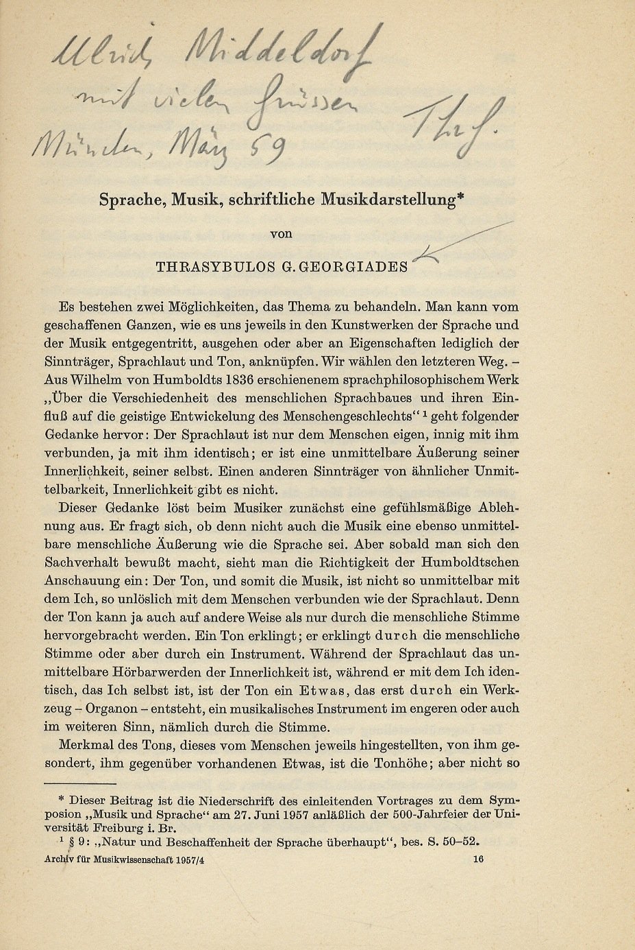 Trossingen, Verlag Archiv für Musikwissenschaft, 1957, in-8, br., pp. (7). Estratto con invio autografo dell'Autore.