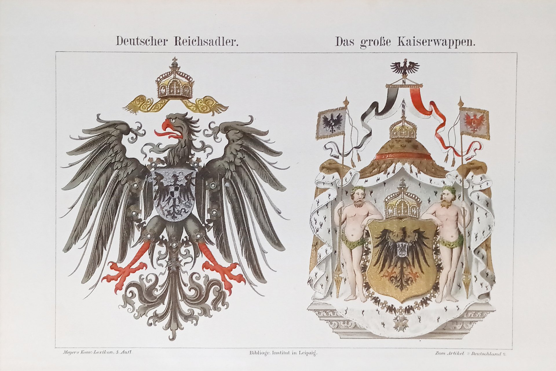 Stampa d'epoca - Deutscher Reichsadler - Das GroÃe Kaiserwappen - Secolo XIX Dimensioni 24 x 16 cm Condizioni molto buone. Â Â