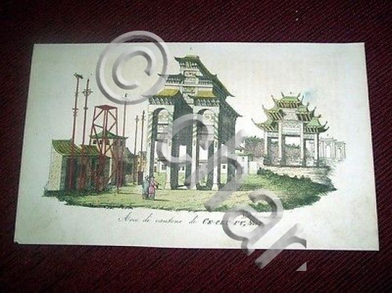 *** Stampa / incisione d' epoca Costumi e Storia dell' Asia - Arco di cantone di Ce-Ceu-Fu ( incisore A. Bernieri ) - tavola estratta dal volume, databile 1800 ca. Dimensioni stampa cm. 13,5 x 22,2 circa Per appassionati, studiosi e collezionisti