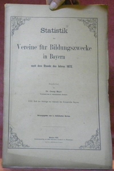Statistik der Vereine für Bildungszwecke in Bayern nach dem Stande des Jahre 1872. 30. Heft der Beitrage zur Statistik des Königreichs Bayern.