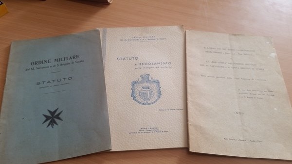 STATUTO E REGOLAMENTO SULLE INSEGNE ED UNIFORMI+ LIBERO USO DEI TITOLI CAVALLERESCHI DEL SS.SALVATORE E DI SANTA BRIGIDA DI SVEZIA NELLE RECENTI DECISIONI DELLA CORTE SUPREMA DI CASSAZIONE+STATUTO. IN TUTTO TRE FASCICOLI IN LINGUA ITALIANA