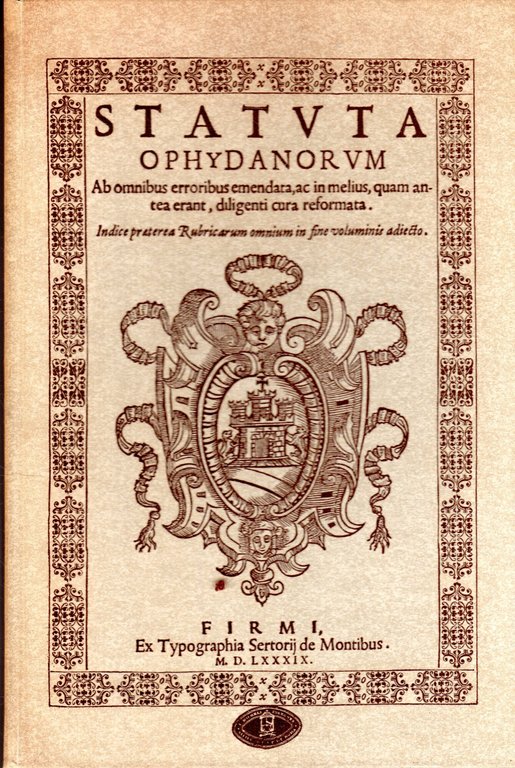 Statvta Ophydanorvm. Ab omnibus erroribus emendata, ac in melius, quam antea erant, diligenti cura reformata. GLI STATUTI DELLA TERRA DI OFFIDA
