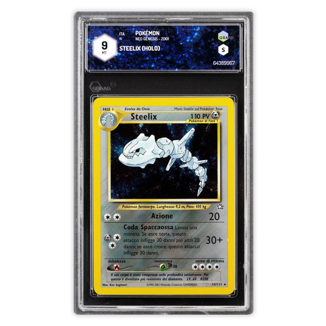 Pokèmon: SteelixNumerazione: 15/111Versione: Foil Espansione: Neo GenesisRilascio: 2001Rarità: Rara Lingua: ItalianoDimensione della carta: Standard Condizione: Mint Valutazione (Graad): 9 La carta viene spedita completa di case rigido, busta trasparente protettiva.