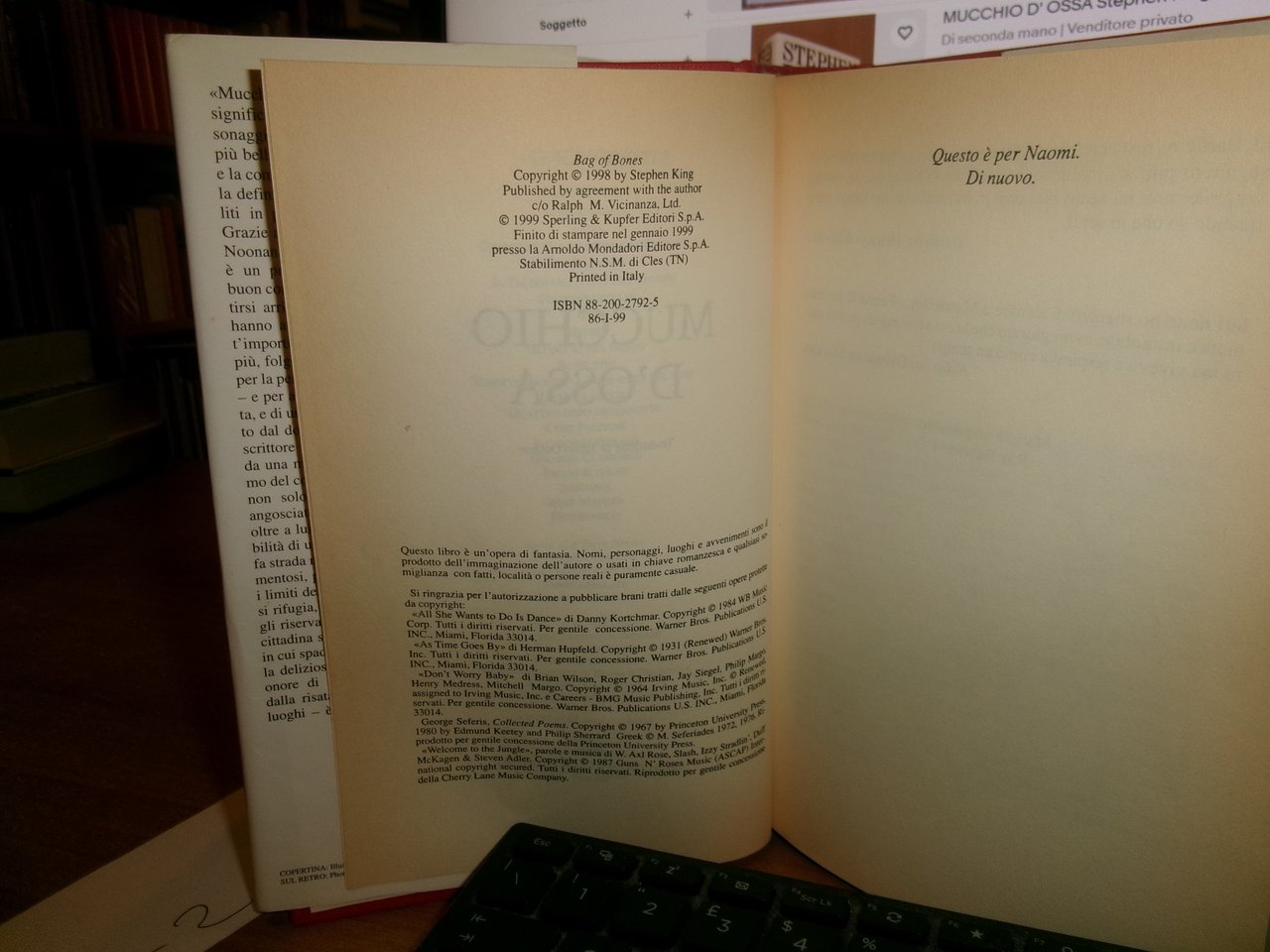 STEPHEN KING. Mucchio d' Ossa una storia d' amore maledetta 1999