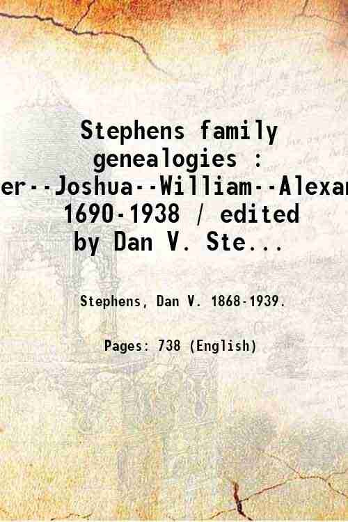 Stephens family genealogies : Peter--Joshua--William--Alexander, 1690-1938 / edited by Dan V. Stephens, Pen drawilngs by Clarence Ellsworth. 1940