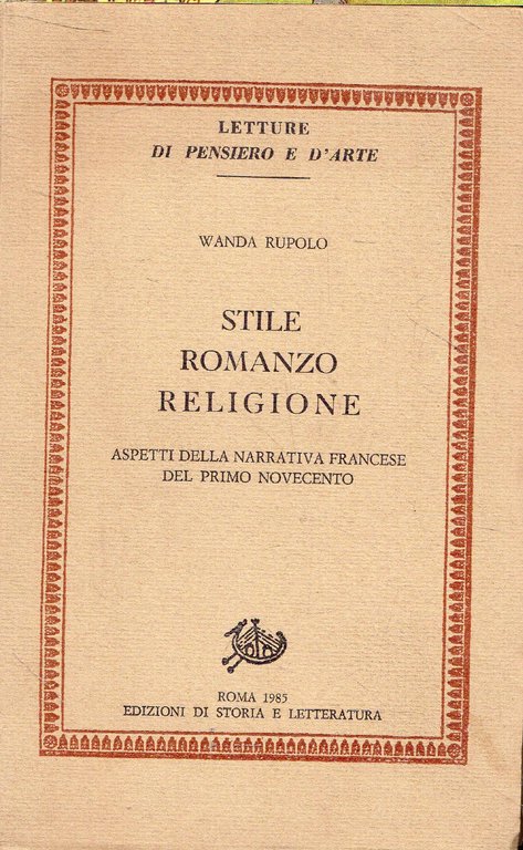 Stile Romanzo Religione. Aspetti della narrativa francese del primo novecento