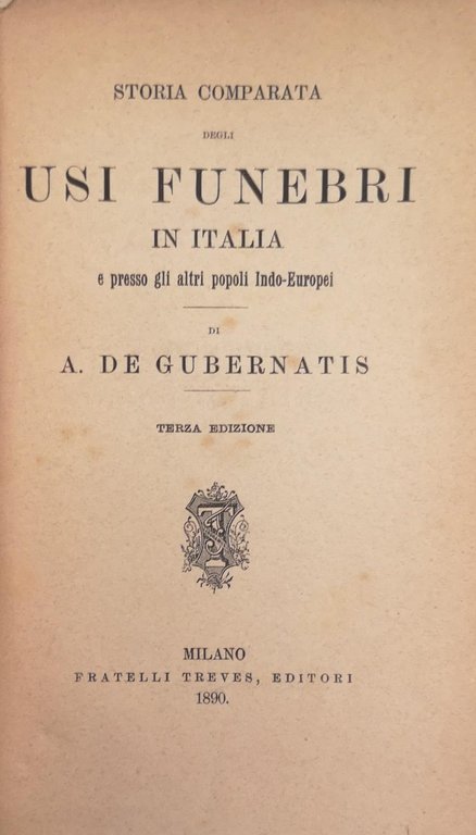 STORIA COMPARATA DEGLI USI FUNEBRI IN ITALIA E PRESSO GLI ALTRI POPOLI INDO-EUROPEI. - Terza edizione.