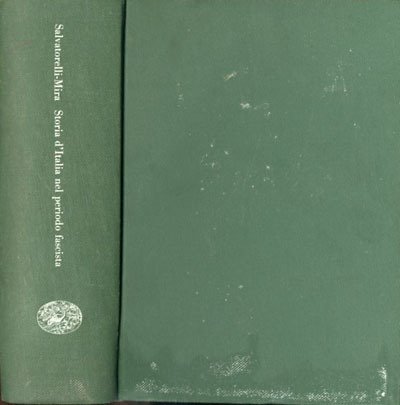 4. rist. nuova ed. 1192 p. ; 22 x 15 cm. Biblioteca di cultura storica, 53. Questa edizione della «Storia d'Italia nel periodo fascista», espone e illustra, su una larga e sicura documentazione, le vicende del nostro paese dal primo dopoguerra sino alla caduta del regime mussoliniano. La presente edizione è stata interamente riveduta, aggiornata allo stato ultimo della documentazione e della critica, aumentata organicamente nei dati di fatto e approfondita nella interpretazione storica. Tale lavoro è stato particolarmente intenso e fruttuoso nei tre capitoli iniziali, e nella parte ultima, dal principio del 1943 in poi. Legatura editoriale con coperta rigida in tela verde, titolo impresso in bianco al dorso, muto il piatto, manca la sovraccoperta editoriale. Coperta con qualche difetto del tempo e macchie di umidità, per il resto libro integro. Codice libreria 1129.