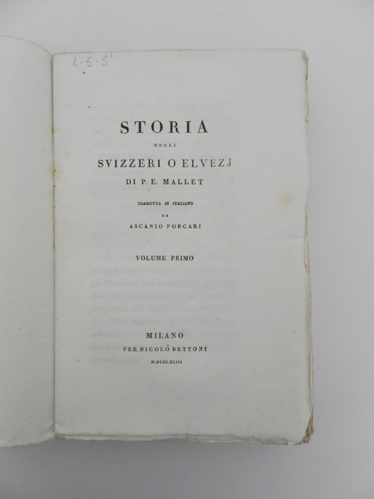 Storia degli Svizzeri o Elvezj di P. E. Mallet. Tradotta in italiano da Ascanio Porcari