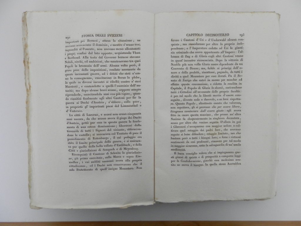 8°, mm 220x145, due volumi, pp. XVIII, 571 e pp. 728 e una grande carta della Svizzera ripiegata al fondo, incisa da Giuseppe Pezze; brossure originali a stampa in magnifico stato di conservazione, esemplare in barbe con rarissime e lievi fioriture alle carte altrimenti candide. Biblioteca storica di tutte le nazioni. Prima traduzione in italiano di classica opera storiografica sulla Svizzera dalle origini della Confederazione fino alla sua dissoluzione nel 1798. Al fine due interessanti appendici: breve continuazione storica fino al 1802 e serie di documenti.. *** TUTTI I NOSTRI LIBRI SONO VISIBILI PREVIO CONTATTO MAIL O TELEFONO NELLA NUOVA SEDE DI MILANO: LIBRERIA COSMOPOLIS, VIA JOMMELLI, 22. ***