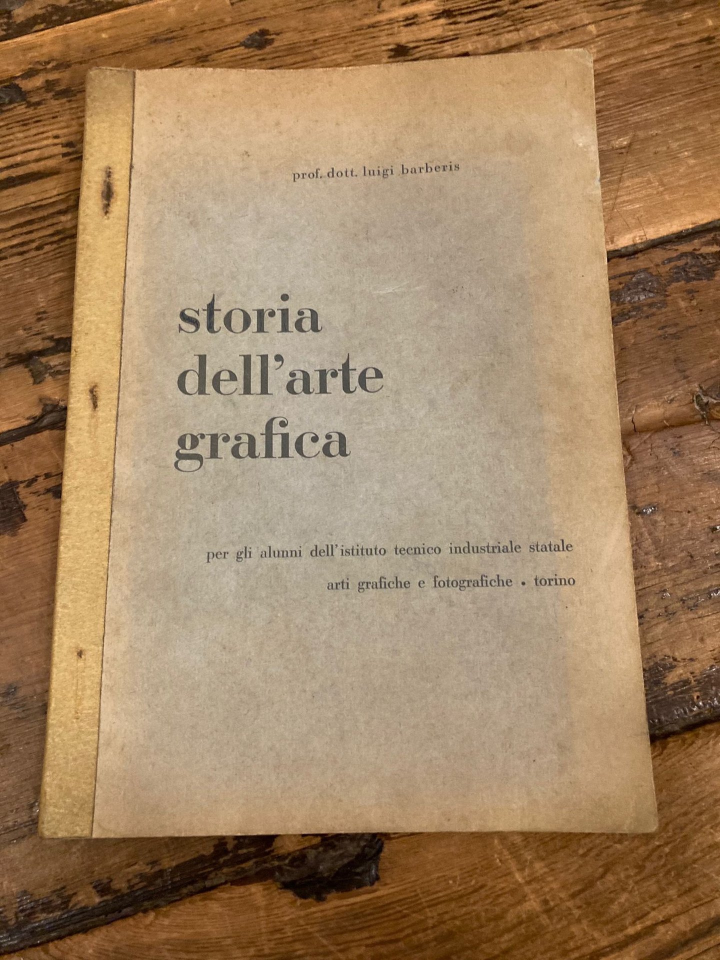 In-8° (24x17 cm), pp. 111 (1) bianca, cartoncino editoriale graffato con titoli al piatto anteriore. Più che buon esemplare con firma di possesso al frontespizio e note di studio a lapis all' ultima pagina. Non comune sommario storico ciclostilato della nascita e dello sviluppo dell' arte tipografica pubblicato come dispensa per gli studenti dell' Istituto Tecnico industriale statale arti grafiche e fotografiche di Torino attivo sotto questo nome dal 1949 al 1953.
