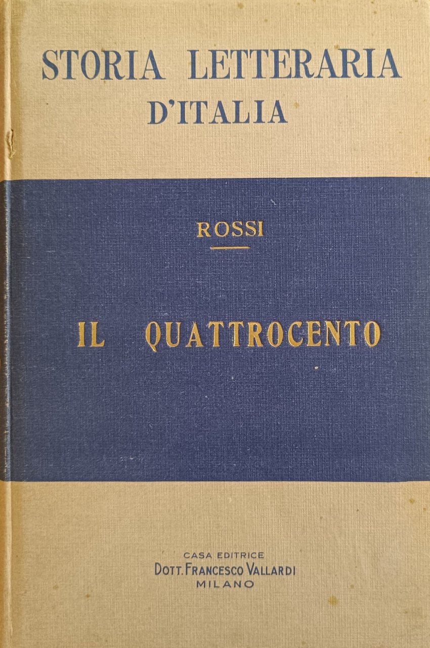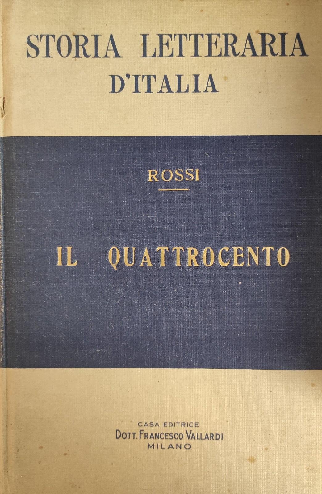STORIA DELLA LETTERATURA D'ITALIA. IL QUATTROCENTO