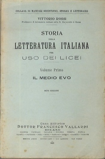 Storia della letteratura italiana per uso dei licei. | Rare and modern books | Rossi, Vittorio.