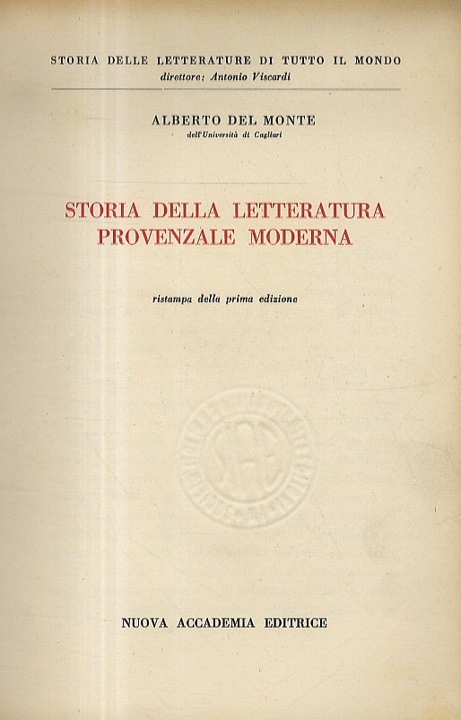 Storia della letteratura provenzale moderna. Ristampa della prima edizione. | Rare and modern books | Del Monte Alberto