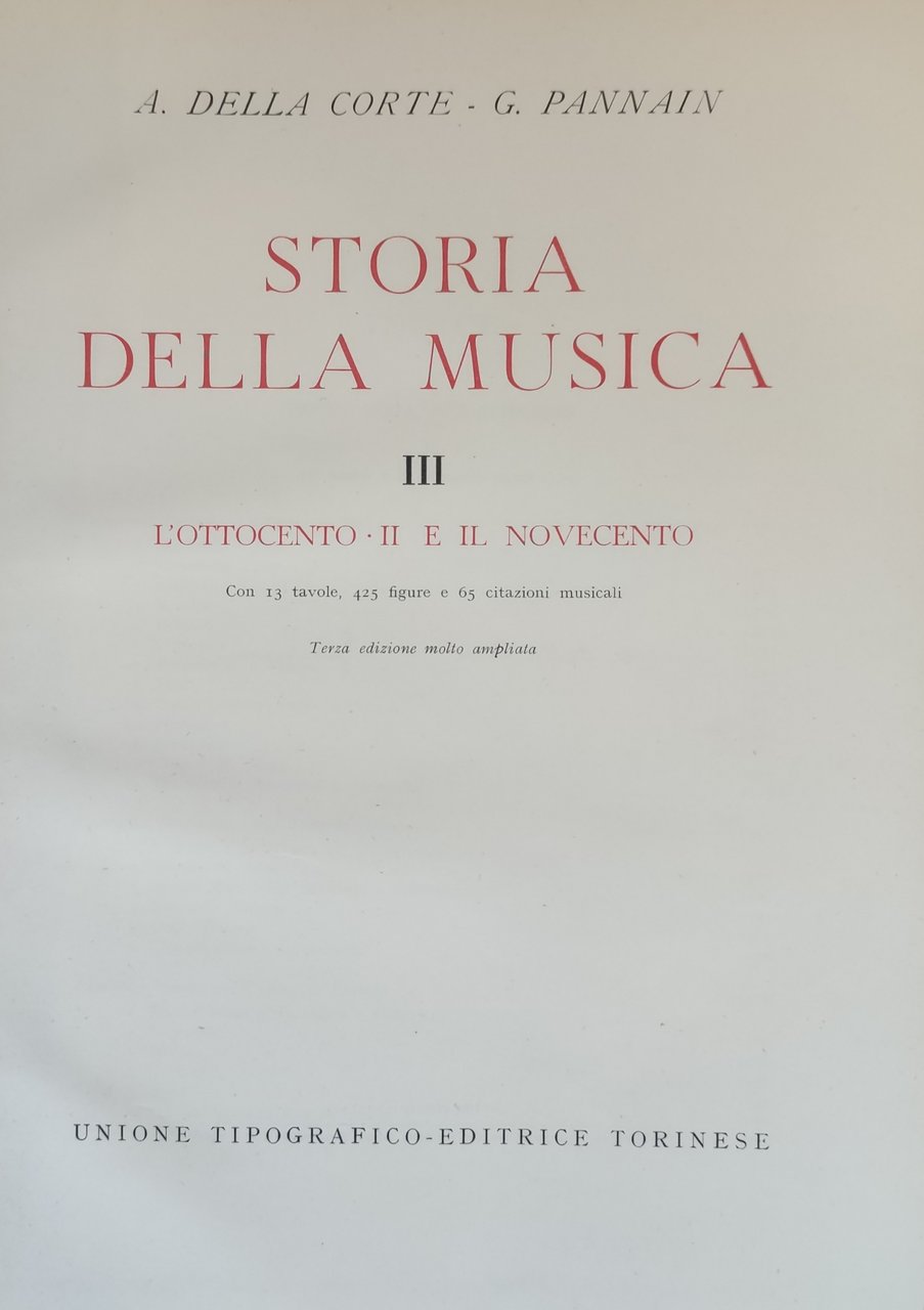 Vol. III: L'Ottocento II e il Novecento. Vol. I: 20 tavv., 342 ill. in bianco e nero f.t. e 358 citazioni musicali;