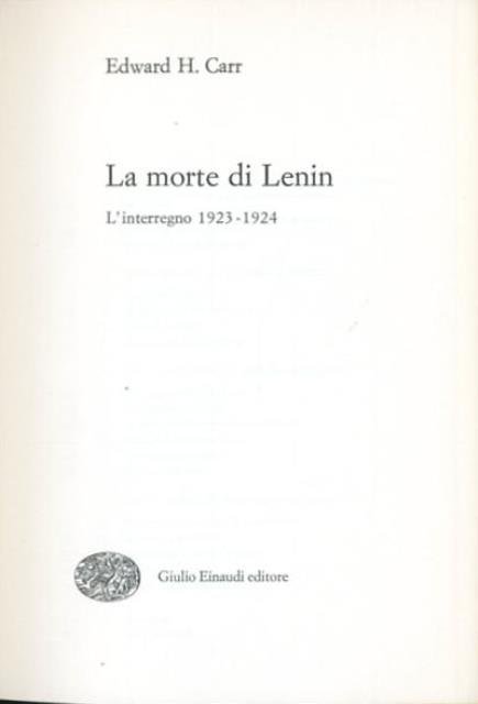 XIII, 360 p. ; 22 x 15 cm. Biblioteca di cultura storica. La vasta e originale ricostruzione di Carr prende in esame qui il periodo dell'«interregno», dopo la morte di Lenin, quando i contemporanei ancora non sapevano chi sarebbe stato il nuovo leader della società nata dall'Ottobre. Lo sfondo, che Carr disegna con precisione di tratto e dovizia di materiale, è quello di una rivoluzione europea che non esplode e di una situazione sovietica che si complica. Siamo alle soglie del «socialismo in un solo paese» e all'ascesa del potere di Stalin. Titolo originale dell'opera: A History of Soviet Russia. The Interregnum, 1923-1924. Traduzione di Paolo Basevi. Legatura editoriale con coperta rigida in tela verde, titolo impresso in bianco al dorso, muto il piatto, manca la sovraccoperta editoriale, le pagine interne sono in ottimo stato. Codice libreria 1133.