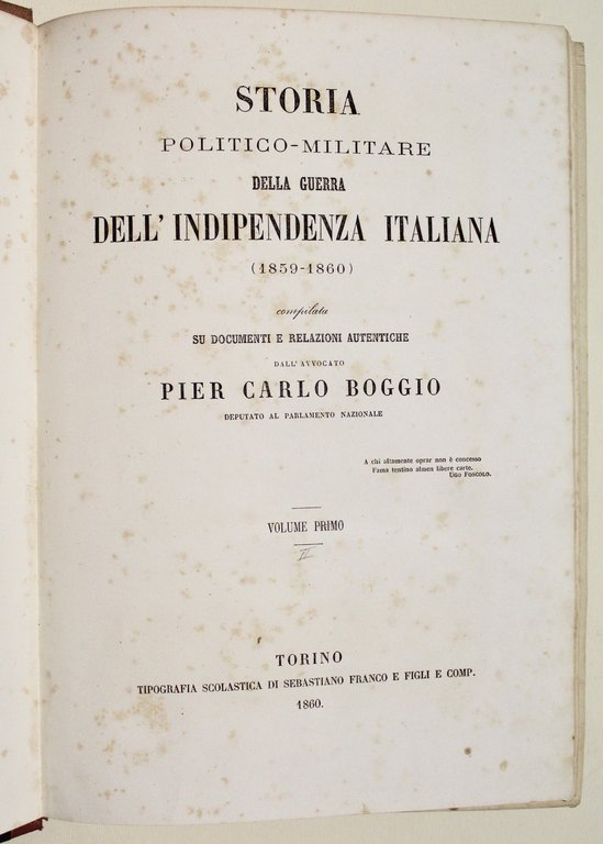 Storia politico-militare della guerra dell'Indipendenza italiana (1859-60) compilata su documenti e relazioni autentiche, ,
