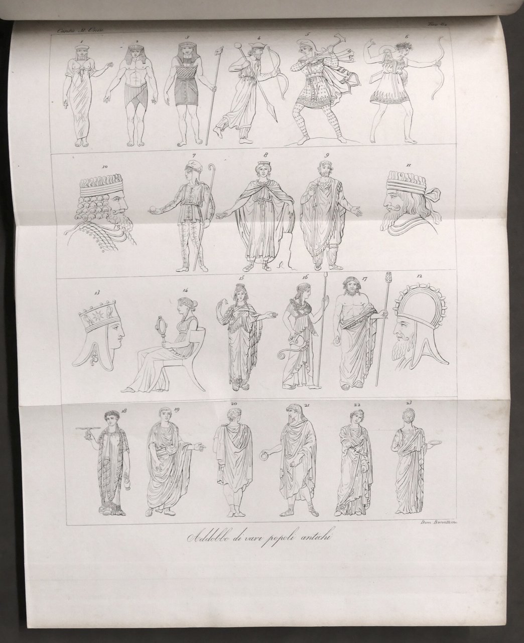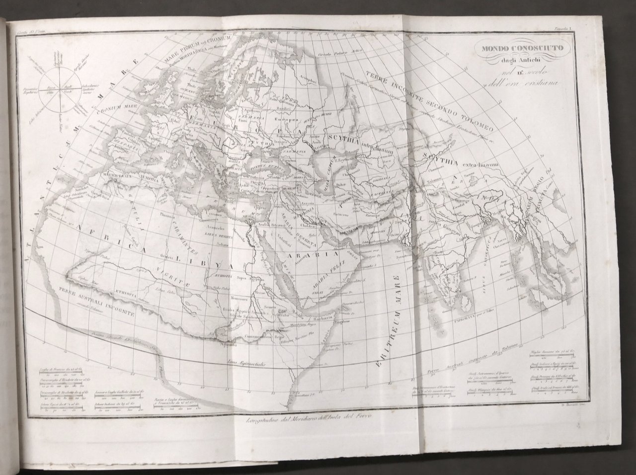 Storia Universale scritta da Cesare Cantù - ed. 1838 / 1846 Opera completa in 35 volumi così suddivisi: Storia Universale - Racconto (18 volumi) Schiarimenti e note sulla Soria Universale (6 volumi) Documenti per la Storia Universale (11 volumi) : Archeologia, Biografie, Cronologia, Filosofia, Geografia, Guerra, Legislazione, Letteratura (2 volumi), Religione, Tavole illustrative ed indici Circa 20.000 pagine complessive e 100 tavole incise. Copertine rigide - Testo in italiano. Condizioni generali molto buone. Qualche traccia di foxing naturale. Mancanza alla parte superiore del dorso del vol. 7 come da foto.