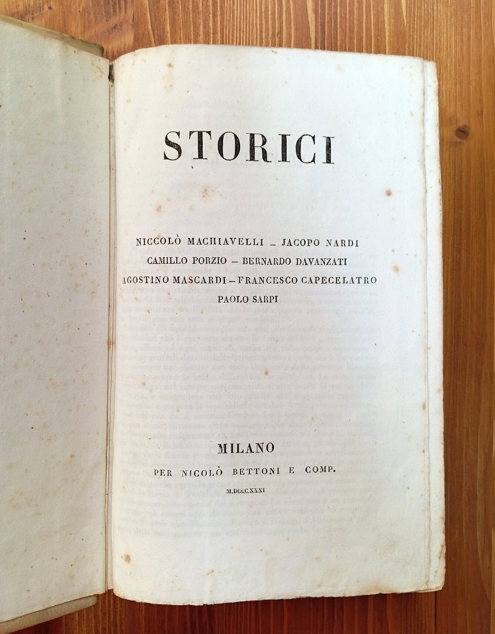 STORICI. Niccolò Machiavelli, Jacopo Nardi, Camillo Porzio, Bernardo Davanzati, Agostino Mascardi, Francesco Capecelatro, Paolo Sarpi