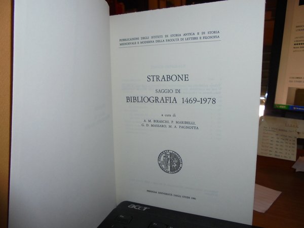 AA.VV. Perugia, Università degli Studi, 1981. STRABONE Saggio di Bibliografia 1469-1978. In-8°, cartoncino edit. 137 pp. In ottimo stato di conservazione. Uff. A - II - 3 - 2