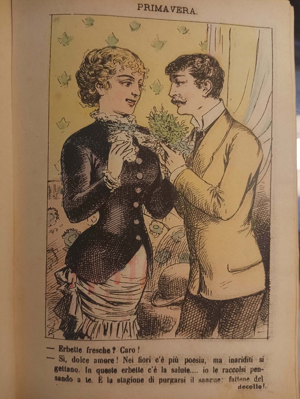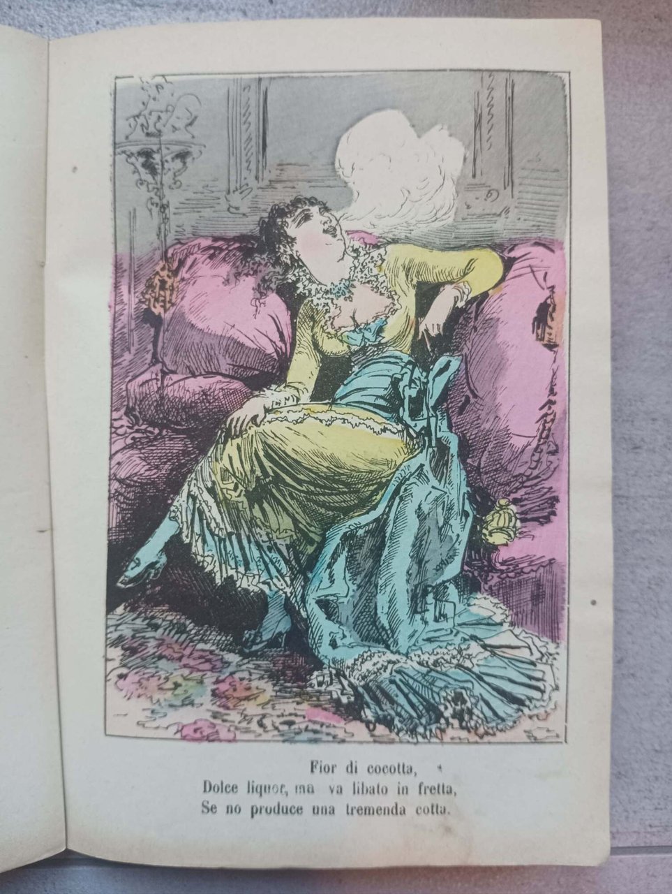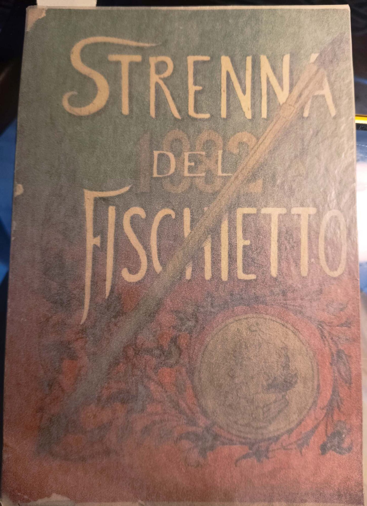 >in-8 (222x150mm), pp. 130, brossura editoriale figurata (mancanza ad un angolo interno della brossura anteriore, qualche lieve fioritura).Tra i vari capitoli comprende: “Rivista retrospettiva della Esposizione di Milano del 1881", "Le quattro stagioni - Amore e igiene" con 4 tavole colorate e un piccolo dizionario zoologico. Contiene numerosissime incisioni.La “Strenna del Fischietto” rispecchiava il carattere liberale e cavouriano del giornale fondato a Torino dal caricaturista Icilio Pedrone che si proponeva di “fischiare su tutte le cose ingiuste”.