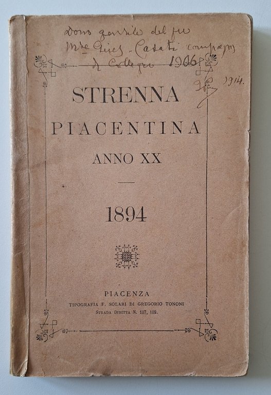 STRENNA PIACENTINA ANNO XX 1894 PIACENZA TIP. SOLARI