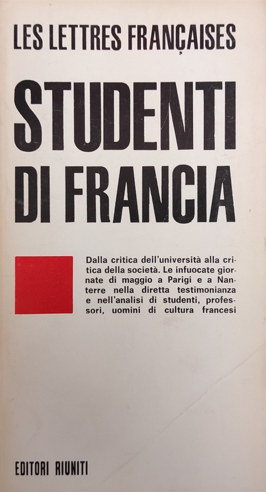 Dalla critica dell'Università alla critica della società. Le infuocate giornate di maggio a Parigi e a Nanterre nella diretta testimonianza e nell'analisi di studenti, professori, uomini di cultura francesi. in ottavo leg. bross. pp. 222 Buono (Good) Buon es..