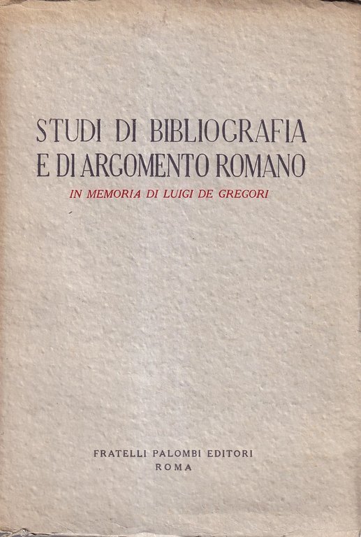 Studi di bibliografia e di argomento romano. In memoria di Luigi De Gregori
