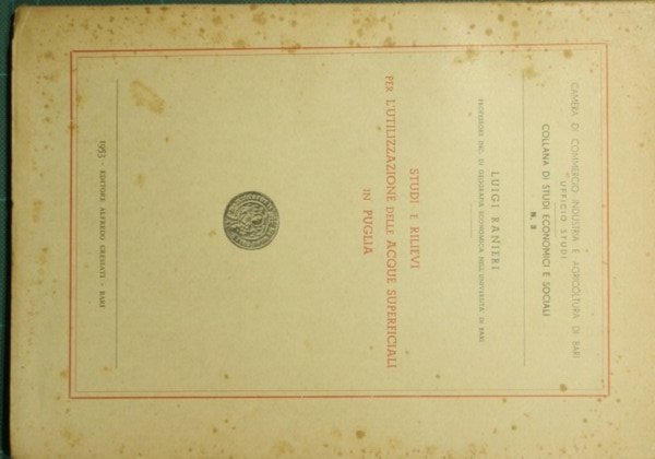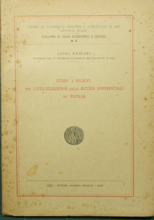 Studi e rilievi per l'utilizzazione delle acque superficiali in Puglia | Rare and modern books | Ranieri Luigi