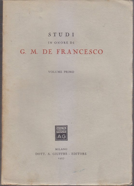 STUDI IN ONORE DI G M DE FRANCESCO VOLUME I 1957 Giuffrè Libro Diritto Legge