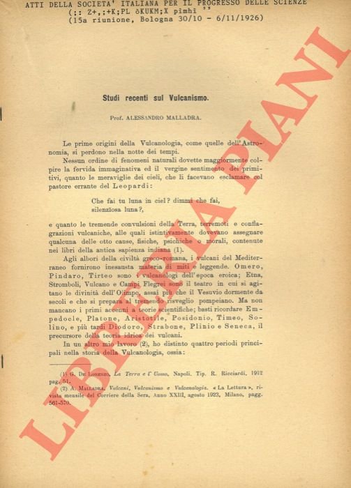 Studi recenti sul Vulcanismo.
