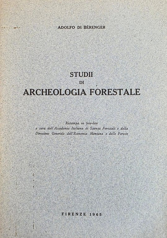 STUDII DI ARCHEOLOGIA FORESTALE seguito da INDICI GENERALI PER SERVIRE ALL' OPERA DELL' ANTICA STORIA E GIURISPRUDENZA FORESTALE IN ITALIA