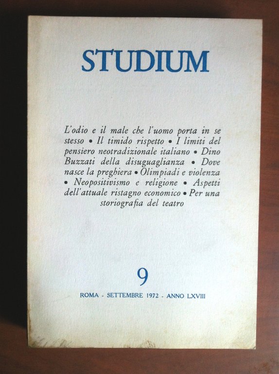 Studium n^ 9 anno LXVIII Settembre 1972 - E13566 | Rare and modern books | ,