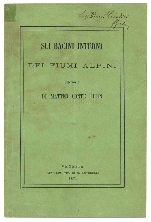 Sui bacini interni dei fiumi alpini. Memoria di Matteo Conte Thun.