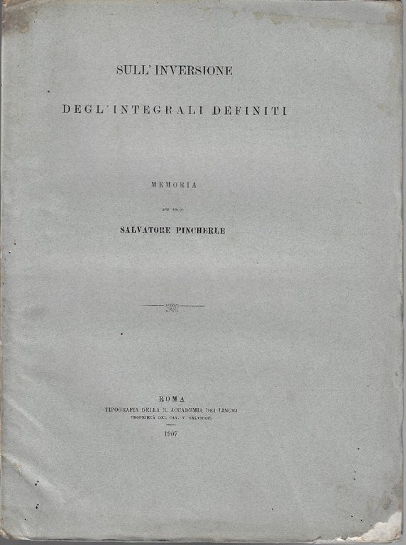 43 p. ; 30 cm Estr. da: Memorie della Societa italiana di scienze (detta dei XL), serie 3a, tomo XV. Buono (Good) copertina con macchie e mancanza, ( come da foto) , vecchi fori di tarlo sulle copertine e attraversano tutto il libro sul margine bianco, senza compromettere la leggibilità.