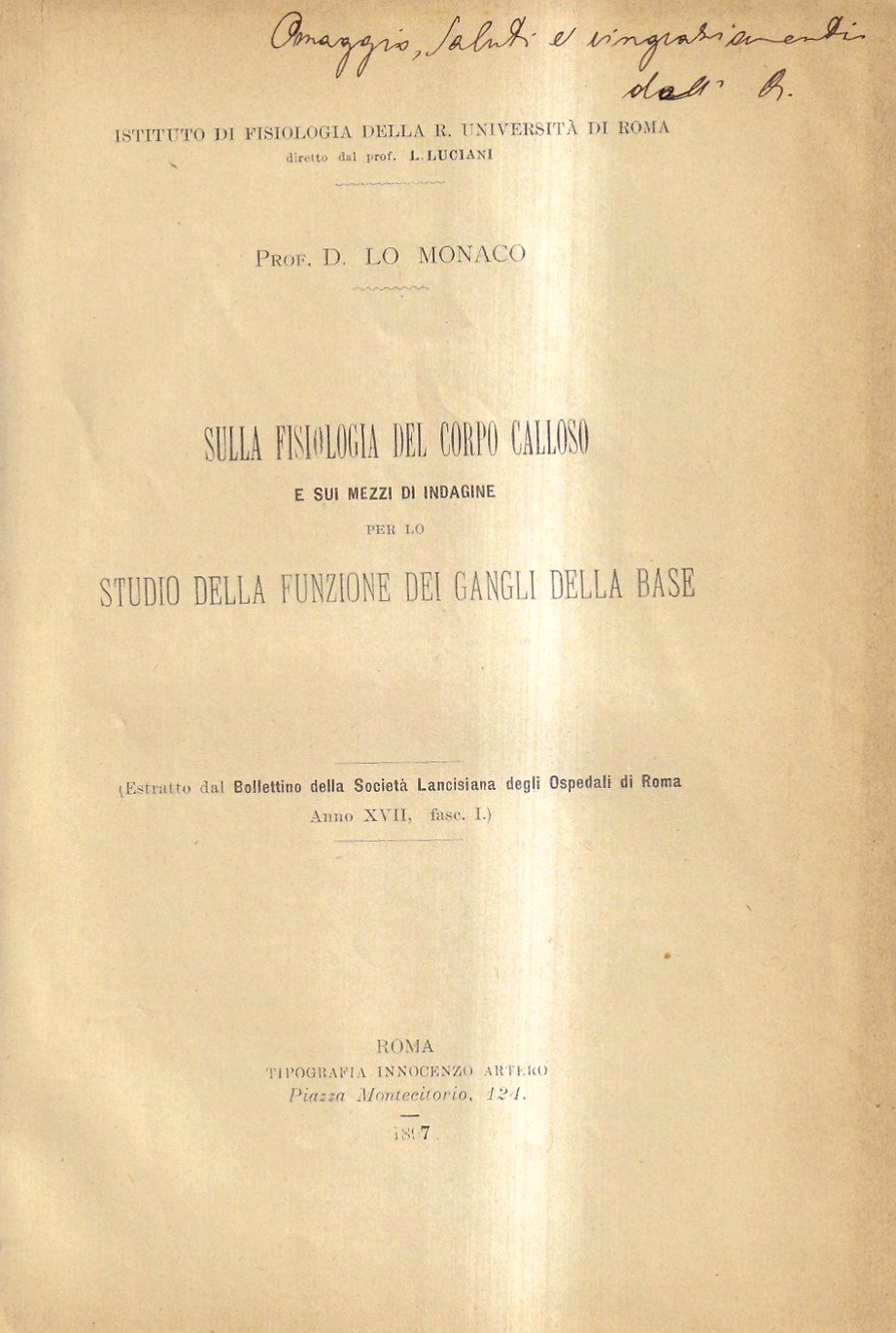 Sulla fisiologia del corpo calloso e sui Mezzi di indagine per lo studio della funzione dei gangli della base. Nota preventiva