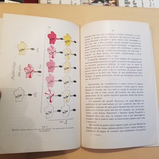 In-8°, pp. 48, 2 figure a colori e 2 in nero, brossura editoriale, piccole mancanze alla brossura. Mendel riferì i suoi studi sul pisello odoroso nel 1865 nell'opera ' Esperimenti sugli ibridi delle piante'. Negli anni che seguirono molte piante ed animali diversi furono studiati in incroci sperimentali. I biologi tentarono, senza successo, di dare una spiegazione logica ai risultati ottenuti, e gli allevatori di piante ed animali dell'epoca non sembra si siano accorti dell'esistenza del lavoro di Mendel che avrebbe potuto risolvere molti dei loro problemi. I pochi biologi che ne erano a conoscenza non erano ancora pronti ad ammettere che la matematica fosse in relazione con gli incroci eseguiti. Fu solo nel1900 cioè 35 anni dopo che Mendel ebbe presentato i suoi risultati, e qualche anno dopo la sua morte, che il lavoro fu 'scoperto' da tre biologi. Karl Corrensin Germania, Hugo de Vriesin Olanda ed EreichTschrmak von Seyseneggin Australia, si accorserodelle importanti scoperte di Mendel mentre scrivevano un articolo scientifico per esporre i propri risultati sperimentali.
