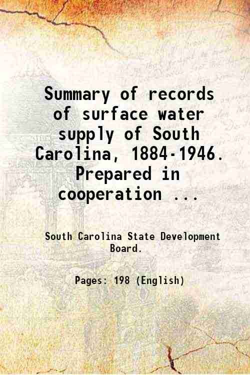Summary of records of surface water supply of South Carolina, 1884-1946. Prepared in cooperation with the Geological Survey, United States Dept. of Interior, Albert E. Johnson, district engineer. 1948