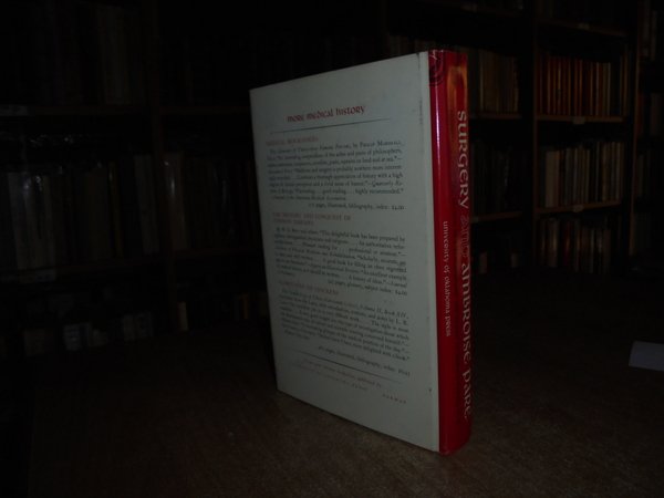 MALGAIGNE, Joseph François [PARÉ, Ambroise]. Norman: University of Oklahoma Press, 1965. SURGERY and Ambroise Paré. Translated from the French and edited by Eallace B. Hamby. In-8°, tela rossa con titolo al dorso, sovracopertina. xxxi, 435 pp. In ottimo stato di conservazione. Uff. C - IV - 4
