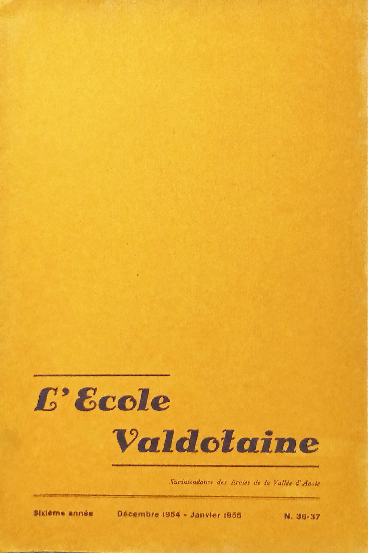 Surintendance des Ãcoles de la Vallée d'Aoste - L'Ecole Valdotaine N. 36/37 - Decembre 1954 - Janvier 1955 Testo in lingua francese. Pagine 105 Copertina morbida. Condizioni molto buone.